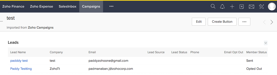 Please check the screen-shot below which is available in Zoho CRM campaigns Module. Click on the leads in the Related list (Left side).